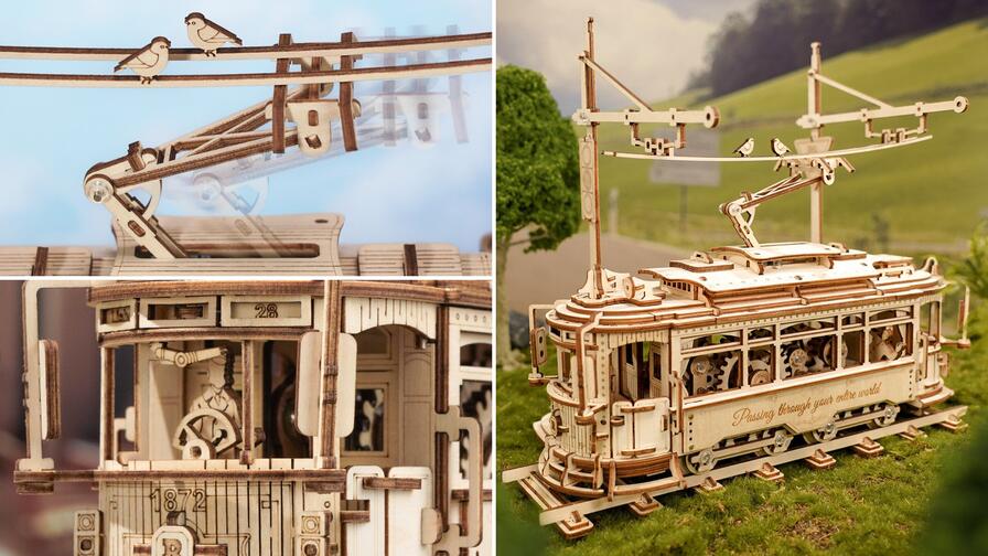 - Κλασικό τραμ πόλης ROKR LK801 Για τους λάτρεις της ιστορίας και της πόλης. Αυτό το κιτ τραμ θα σας μεταφέρει στους δρόμους της Λισαβόνας και θα σας ενθουσιάσει με ρεαλιστικές λεπτομέρειες.