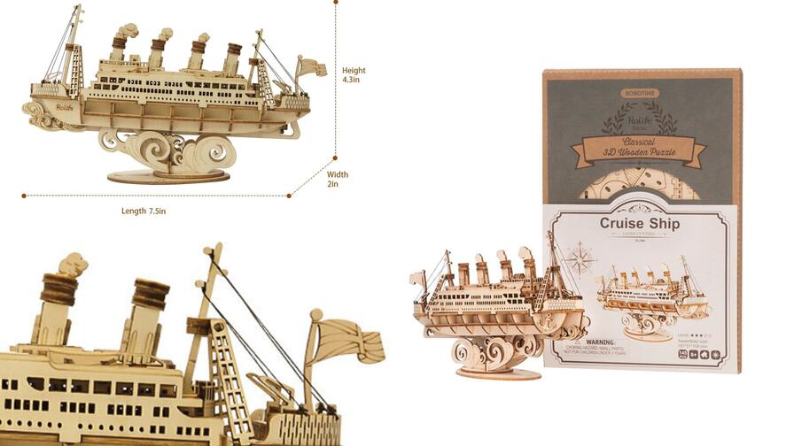 - Κρουαζιερόπλοιο Rolife TG306 Ιδανικό για όσους αγαπούν τα λεπτομερή μοντέλα. Αυτό το ξύλινο σκάφος έχει όμορφα χαρακτηριστικά που μπορείτε να ολοκληρώσετε σε περίπου μία ώρα.
