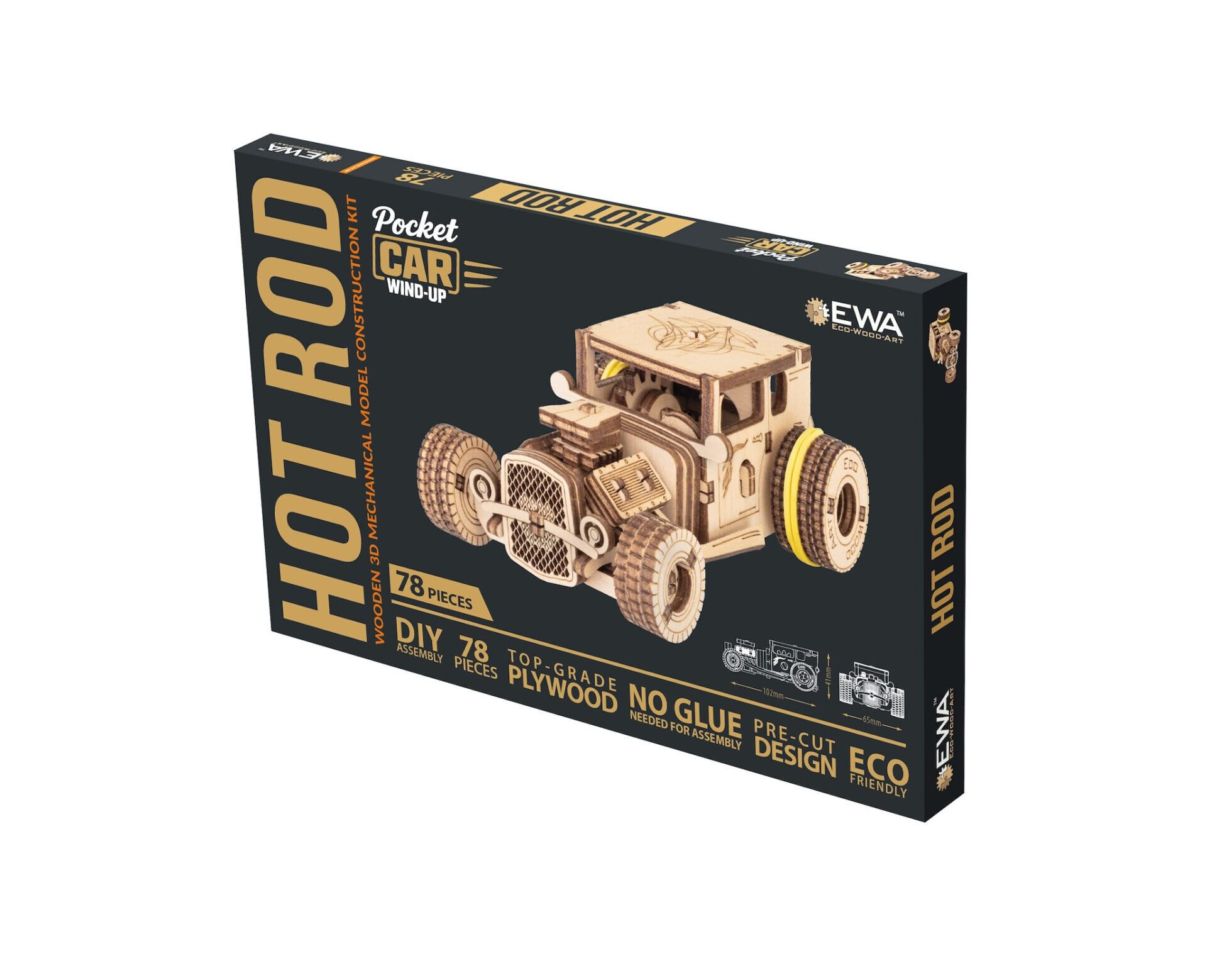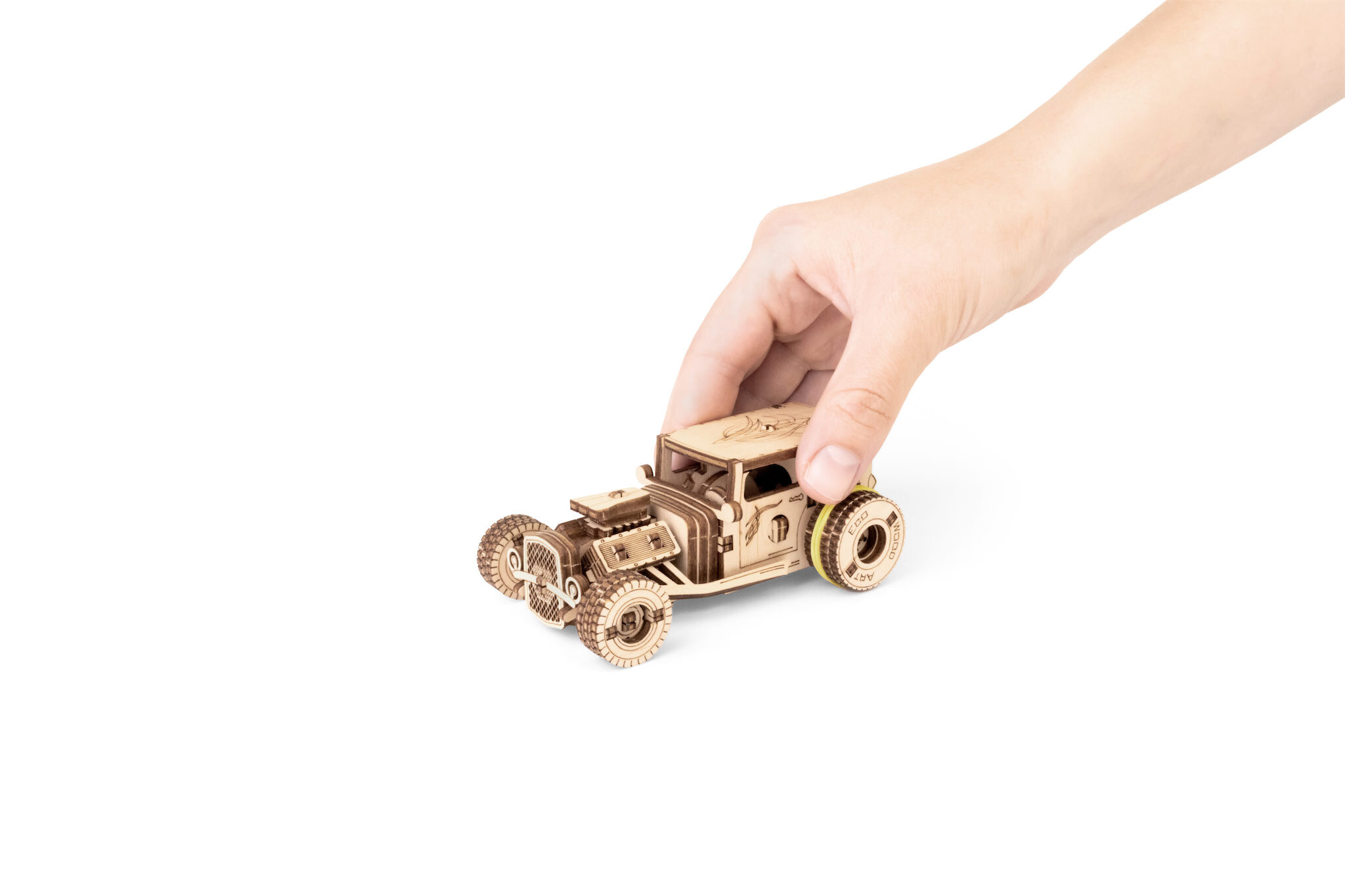 Τα Hot Rods, ως φαινόμενο της αυτοκινητοβιομηχανίας, προήλθαν από νέους λάτρεις της γρήγορης οδήγησης, οι οποίοι τροποποίησαν παλιά οχήματα ώστε να είναι όσο το δυνατόν πιο ελαφριά και γρήγορα. Σταδιακά έγιναν ένα λατρευτικό στοιχείο της ιστορίας της αυτοκινητοβιομηχανίας και σήμερα αντιπροσωπεύουν τη νοσταλγία, την κατασκευαστική δεξιοτεχνία και την ελευθερία στους τροχούς. Αυτό το ξύλινο μοντέλο σας επιτρέπει να έχετε ένα εμβληματικό κομμάτι αυτής της ιστορίας σε μια μίνι έκδοση ακριβώς στο τραπέζι σας.