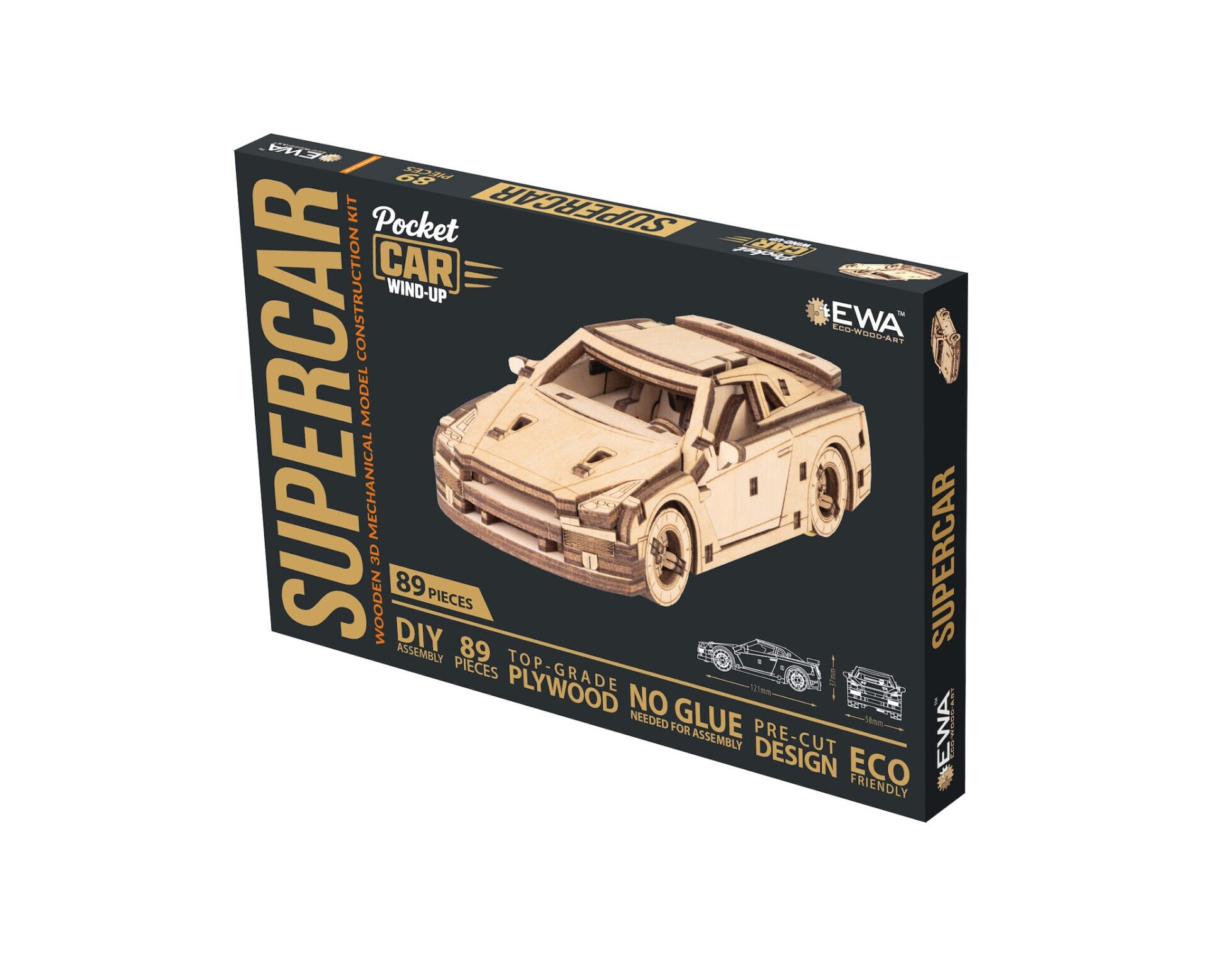 Ανακαλύψτε το ξύλινο μοντέλο Supercar που συνδυάζει την κομψότητα των σπορ αυτοκινήτων με τη δημιουργική εμπειρία κατασκευής! Αυτό το μηχανικό ξύλινο παζλ είναι μέρος της σειράς Pocket Car - συμπαγή μοντέλα που χωράνε στην τσέπη σας.